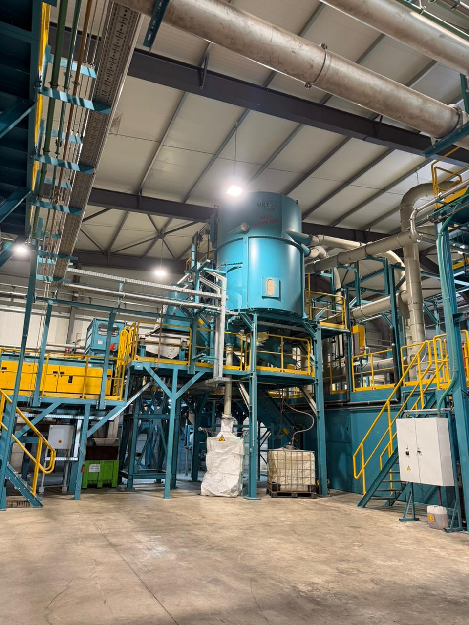 The plant is configured for a processing capacity of up to 4 tonnes per hour. The process is based on VHC + VFC recovery recycling. Blowing agents are recovered via activated carbon adsorption. Inertisation is applied in both the shredding stage and during PUR-matrix degassing to ensure controlled and safe gas handling.