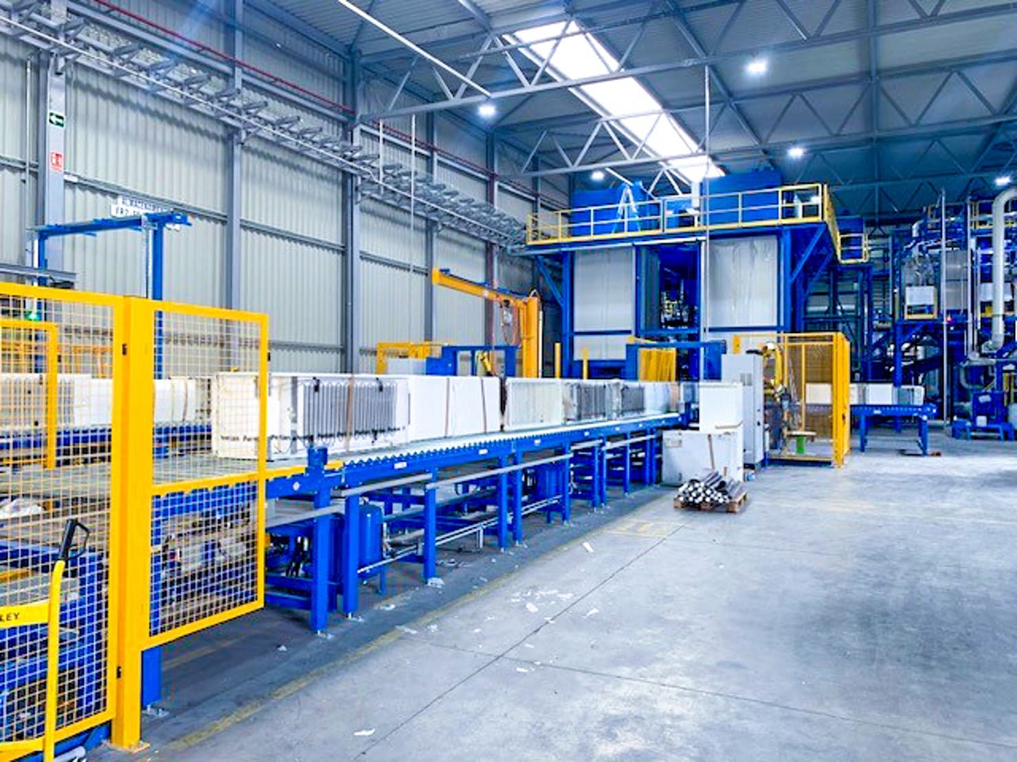 The plant is configured for a processing capacity of 4 tonnes per hour. The process is based on VHC selective recycling. Only appliances containing halogen-free blowing agents are processed within the selective treatment line.